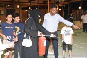 وفي اليوم الثالث عقدت ورشة عمل في تحت مسمى “المنقذ الصغير”، قدمها المدرب جاسم المغلق، تضمنت تعليم مبادئ وأساسيات الاطفاء وأهمية معرفة كيفية التعامل معها في حال حدوثها بالمنزل.