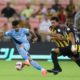 وأرسل لاعب الأهلي أليوسكي كرة في الدقيقة (38) لزميله عمر السومة الذي حولها برأسه بعيدة عن المرمى.