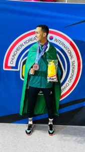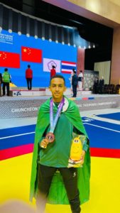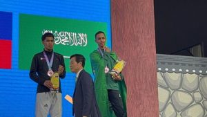 حقق لاعب المنتخب السعودي الأول للتايكوندو رياض الظافري برونزية وزن 54 كجم في منافسات البطولة الدولية المفتوحة المصنفة G2 للتايكوندو التي تقام منافساتها حالياً في مدينة تشونشون بجمهورية كوريا .. وكان الظافري قد تغلب على لاعبا كوريا ومنغوليا قبل ان يخسر مباراة نصف النهائي من بطل الوزن لاعب منتخب كوريا .يشار إلى أن المنتخب الكوري دخل المنافسات بأكثر من لاعب حيث أن النظام يسمح بذلك .