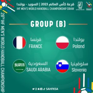 وأسفرت القرعة التي أجريت في قاعة الإذاعة الوطنية البولندية في كاتوفيتشي عن تواجد المنتخب السعودي في المجموعة الثانية بجوار منتخبات: فرنسا، بولندا، سلوفينيا.