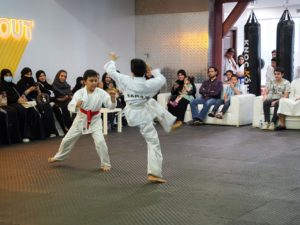 وتم تقديم عدد من عروض الكاراتيه والجمباز والايكيدو والموي تاي للاطفال وكذلك تم تقديم عرض كاراتيه للطفل رعد الفتني من ذوي الاحتياجات الخاصة (توحد) والتى تحدثت والدته مسك ختام الحفل عن ما وجد أبنها من إهتمام كبير من الجهاز التدريبي وهي تنصح الأمهات التى لديهن أبناء او بنات ذوي الاعاقة لا يستسلمون فالصبر على ابناءهم وبإذن الله النتيجة ستكون مرضية فالرياضة مهمة جداً لهم ودعم احالتهم الجسدية والنفسية والعقلية .