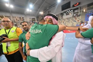 وبارك “آل نمر” لكافة الرياضيين في المملكة، لاسيما محبي كرة اليـد، وللأجهزة الفنية والإدارية واللاعبين الابطـال على ما قدموه من ملحمة كروية استطاعوا من خلالها إقصـاء حامل اللقب “كوريا” والتأهل لكأس العالم للمرة الرابعة في تاريخ كرة اليد السعودية، كما أكد “آل نمر” ان العمل في لجنة المنتخبات كبيـر جداً، فبعد تأهل منتخب الرجال، تأهل اليوم منتخب الشباب، وينتظر منتخب الناشئين فرصة كبيـرة أيضاً للتأهل بعد أسبوعين من الآن من خلال البطولة الآسيـوية، مشيراً إلى ان الاتحاد السعودي لكرة اليد يلقى دعماً ومتابعة مستمرة من قبل سمو وزير الرياضة وسمو نائب رئيس اللجنة الأولمبية والبارالمبية وكافة القيادات الرياضية، وان هذا الانجـاز هو ثمرة تلك الجهود والمتابعة بعد توفيق الله.