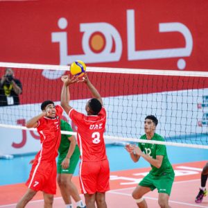 ونجح الأخضر الشاب في الظفر بنتيجة الشوط الأول بنتيجة (25 – 18)، قبل أن يحقق المنتخب الاماراتي الشوط الثاني بنتيجة (25 – 22).