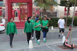ويجرى اللاعبين واللاعبات التدريبات يومياً على فترتين صباحية ومسائية، لرفع المعدل اللياقي.