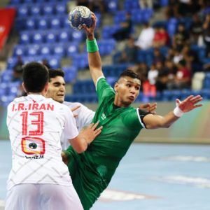 وفي الشوط الإضافي الأول تمكن الأخضر من التقدم بنتيجة (27-26)، وأنتهى الشوط الإضافي الثاني بالتعادل (28-28)، لتتجه المواجهة مجدداً إلى شوطين إضافيين آخرين، إذ أنتهى شوط المباراة الإضافي الثالث لصالح المنتخب الإيراني بنتيجة (30-31)، وكمثل سابقه واصل المنتخب الإيراني التقدم حتى أنهى اللقاء لمصلحته بنتيجة (32-33)، ليتأهل إلى المواجهة النهائية.