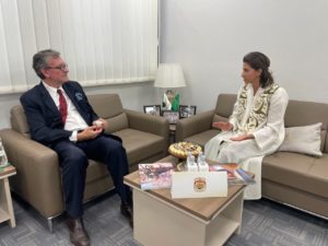 وفي نهاية الزيارة، قدمت نورة اليوسف درعاً تذكارياً إلى السفير البلجيكي.