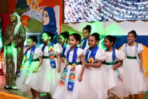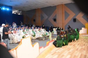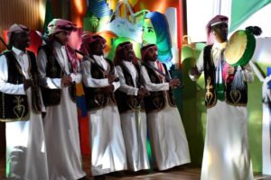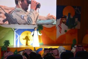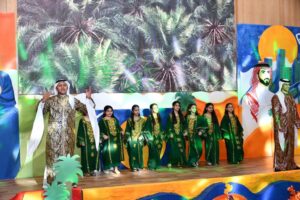 وتابع الباحص، كما شهد الحفل استعراضاً مسرحياً ، تلاه لوحات من القصائد الشعرية من تقديم الطلاب ، كذلك فقرة عرض مرئي لأبرز الأنشطة والفعاليات بعنوان “من أجلك ياوطن” كذلك أوبريت “نحن السعوديين” وصولاً إلى اختتام الحفل بالعرضة السعودية.