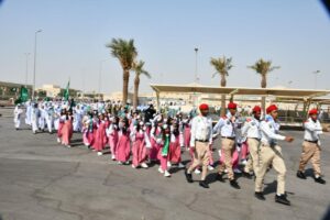 من جهته أشار المتحدث الرسمي لتعليم الشرقية سعيد الباحص، إلى حزمة من الفقرات والأنشطة التي شهدها الحفل كان في مقدمتها المسيرة الراجلة والخيالة والهجانة، تلاها الاستعراض الكشفي، إضافة لمعرض مصاحب جاء بعنوان “هي لنا دار” تنوعت أجنحته ما بين جناح للفنون والرسم وجناح يضم عدة لوحات تجسد حب الوطن ، والتي شهدت وقوف مدير التعليم عليها .