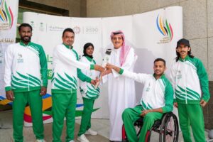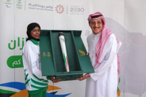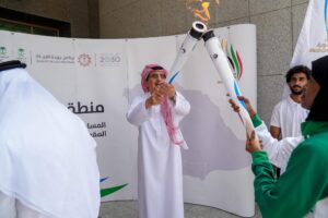 سلمت لاعبة المنتخب السعودي ونادي اليرموك لرفع الاثقال حنان خالد العامري شعلة دورة الألعاب السعودية الي امير منطقة جازان صاحب السمو الملكي / الامير محمد بن ناصر بن عبدالعزيز ال سعود وياتي ذلك خلال رحلة الشعلة الخاصة بدورة الألعاب السعودية والتي تهدف الى نقل رسالة سلام وصداقة إلى الناس في مختلف أنحاء المملكة، كما تهدف إلى زيادة التوعية والترويج للحدث الوطني الأكبر في تاريخ الفعاليات الرياضات المحلية في السعودية، وتهدف أيضاً إلى الحث على متابعة أبطال السعودية في مشاركتهم بالدورة.
