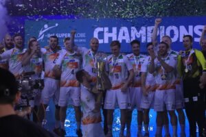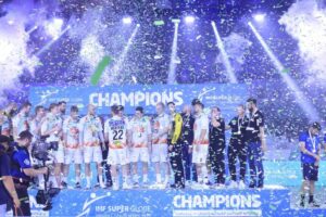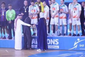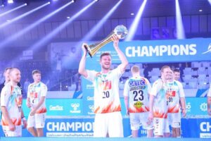 توج رئيس الاتحاد الدولي لكرة اليد الدكتور حسن مصطفى ورئيس الاتحاد السعودي الأستاذ فاضل بن علي آل نمر، فريق ماغديبورغ الألماني بلقب بطولة العالم للأندية لكرة اليد “سوبر جلوب 2022” الـ(15)، للمرة الثانية في تاريخه على التوالي، بعد فوزه مساء اليوم الأحد، على منافسه برشلونة الإسباني في الأشواط الإضافية، بنتيجة 39-41 في ختام منافسات البطولة، التي استضافتها المملكة خلال الفترة من 18 إلى 23 أكتوبر الجاري للمرة الثالثة على التوالي، على صالة وزارة الرياضة بالدمام، بمشاركة 12 نادياً.