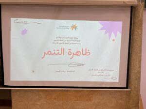 حيث قدمت صباح اليوم الاثنين 28 ربيع اول 1444 هجريا كل من الاخصائيتين الاجتماعيتين ليلى البحراني وفاطمة النويصر محاضرة حول ظاهرة التنمر في المدارس بمدرسة مارية القبطية للصفوف المبكرة. استهدفت المحاضره 350 طالب وطالبه من الصفوف المبكره في حضور الكادر التعليمي بالمدرسة.