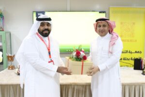 وفي ختام الأمسية قدم فريق الموظفين الإداريين هدية تذكارية لرئيس الجمعية د. علي ابراهيم الدمستاني تقديراً لجهودة لتطوير الجمعية.