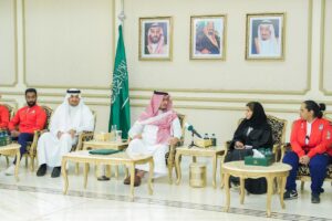 استقبل صاحب السمو الملكي الأمير أحمد بن فهد بن سلمان بن عبدالعزيز نائب أمير المنطقة الشرقية بديوان الإمارة اليوم الأثنين الأستاذة مرام البتيري رئيس فريق “شعلة الشرقية ” ولاعبات الفريق