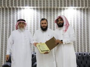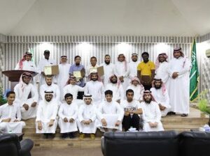 وفي نهاية المحاضرة قام الاستاذ محمد النهدي بتقديم درع النادي للشيخ سعيد بن هادي القحطاني وكذلك وزعت الدروع على الضيوف .