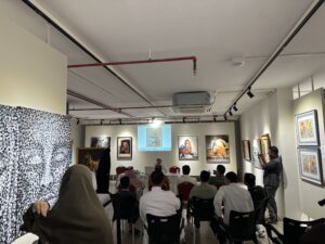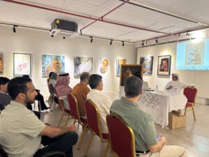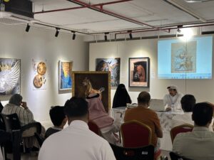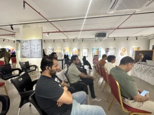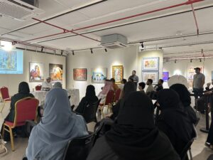 وقد تحدث كل فنان و فنانة عن الأعمال الفنية التي قدمها في المعرض وذلك عبر جهاز البروجكتر ، حيث تم عرض الأعمال، فكان كل فنان ياتي إلى المنصة ليتحدث عن رؤيته لعمله ،وإحساسه بالفن ، وهذه الخطوة تعطي الفنان القدرة المستقبلية لمواجهة الجمهور و الأعلام والوقوف أمام الكاميرا .