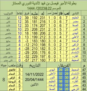 الجدير بالذكر أن مواجهات الجولة التاسعة ستلعب يوم الجمعة المقبل الموافق 18 نوفمبر 2022م، حيث يستضيف الهدى نظيره الزلفي، ويلعب الخليج مع الترجي، ويلتقي النور مع الوحدة ، ويتواجه القارة مع الابتسام، ويستضيف الأهلي نظيره المحيط، وفي أبرز المواجهات سيلتقي الصفا مع مضر.