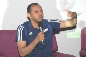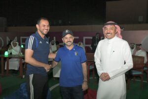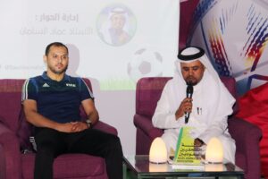 نظم مجلس الإعلام الرياضي في فرع هيئة الصحفيين السعوديين بالأحساء الصالون الإعلامي برعاية ستوديوم سموير في فندق مكان مساء امس السبت 19 نوفمبر 2022م مستضيفا الحكم الدولي الاستاذ محمد بن خالد الهويش بمشاركة عدد كبير من الإعلاميين والمهتمين بالشأن الرياضي يتقدمهم مدير فرع هيئة الصحفيين السعوديين بالأحساء الأستاذ عادل بن سعد الذكر الله ورئيس مجل الإعلام الرياضي بالأحساء الأستاذ صادق بن محمد الحرز .. وحضر جانب من الصالون الإعلامي الأستاذ أحمد بن راشد الراشد رئيس نادي الفتح السابق ورئيس لجنة المسابقات برابطة دوري المحترفين السعودي سابقاً ورئيس اللجنة الفرعية للحكام بالاحساء .. وبدأ الصالون الرياضي بكلمة ترحيبية من سعادة الأستاذ عادل بن سعد الذكر الله، أشاد فيها بسيرة الهويش التحكيمية وأشاد فيها بجهود مجلس الإعلام الرياضي برئاسة الأستاذ صادق الحرز على الجهود المبذولة للإعداد للصالون الإعلامي. ثم تعريف بالضيف من قبل مقدمة الحفل الأستاذة الريم المري وبعدها بدأ مدير الحوار الحفل الأستاذ عماد السلمان و فارس الصالون الحكم الدولي محمد الهويش فقرات الحفل وذلك باستعراض فيديو مرئي عن الهويش استعرض مسيرته التحكيمية وأهم محطات حياته ثم بدأ الحوار الهادف مع الهويش والذي نال إشادة الحضور الكبير الذي شهده الصالون الإعلامي كما تم عرض فيديو مرئي عبر شاشات العرض تحدث من خلاله الأستاذ عمر المهنا رئيس لجنة الحكام الرئيسية السابق بالإضافة إلى الحكم الدولي السابق عبدالرحمن الزيد، تحدثا من خلاله عن الحكم الهويش وأشادا بمسيرته التحكيمية متمنين أن يكون من حكام كأس العالم 2026م .. كما شهد الصالون مداخلات عدد من الإعلاميين وجهوا من خلالها الأسئلة للهويش أجاب من خلالها على جميع الأسئلة. وفي نهاية الصالون الإعلامي تم تقديم درع هيئة الصحفيين السعوديين بالأحساء وهدية تذكارية للحكم الدولي محمد الهويش. كما تم تكريم رئيس وأعضاء مركز الإعلام الرقمي في فرع هيئة الصحفيين السعوديين بالأحساء بمناسبة تميزهم في التغطية الإعلامية للمؤتمر الدولي الأول للطب البيطري والذي نظمته الجمعية الطبية البيطرية السعودية والذي حمل عنوان: آفاق الطب البيطري في المملكة العربية السعودية – التحديات والفرص في الفترة 11_13 اكتوبر 2022م في رحاب جامعة الملك فيصل بالاحساء .