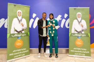 وصلت بعثة المنتخب السعودي الأول للتايكوندو في ساعة متأخرة من مساء أمس إلى مطار الملك خالد الدولي بالرياض، قادمة من مدينة جوادالاجارا المكسيكية، عقب المشاركه في بطولة العالم للتايكوندو للكبار التي حققت من خلالها اللاعبة دنيا أبو طالب الميدالية البرونزية بوزن (-49) كجم، وتنافس على الميداليات المتقدمة (122) دولة، ويعد هذا الإنجاز جديد للرياضة السعودية، حيث تمثل هذه الميدالية الأولى في تاريخ اللعبة على الصعيد العالمي، وسبق للبطلة وأن حققت البرونزية الآسيوية الصيف الماضي، وبهذا النقلات دخلت التايكوندو السعودي ضمن قائمة أفضل عشرين دولة على مستوى اللعبة بالعالم، وكان في استقبال البعثة أعضاء الاتحاد السعودي للتايكوندو، وعددٌ من لاعبي ومحبي التايكوندو، من جانبه قال المدير التنفيذي للاتحاد الأستاذ محمد الشهري نحمد الله على المكتسبات التي تحققت وكان أخرها البرونزية العالمية، وهذا تأكيد على نجاح الاستراتيجية التي يرسمها المسؤولين بالاتحاد بقيادة العميد شداد العمري ، ولاشك أن الدعم الذي نجده من وزارة الرياضة واللجنة الأولمبية ساهم في القفزات التي تحققت في جميع الفئات والقادم بإذن الله أجمل .