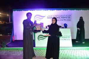 وفي ختام الزيارة قدمت إدارة المهرجان درع تكريماً للاستاذة هنادي على زيارتها وتشريفها للمهرجان وأعتزازاً بما قدمته الشركة السعودية العالمية للموانئ .