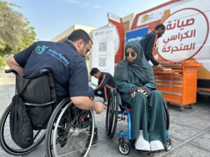 تقدم جمعية سواعد في هذه المبادرة ورشة متنقلة لصيانة الكراسي المتحركة من خلال سيارة مجهزة بكافة المعدات اللازمة و قطع الغيار لأجهزة ذوي الإعاقة ، والتي يديرها فريق فني متخصص لصيانة وإصلاح الكراسي المتحركة .