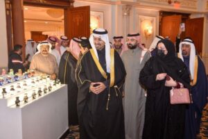 وتجول الخريف على أركان المعرض، الذي تشارك فيه أكثر من 42 شركة متخصصة في مجال العطور من المملكة ودول الخليج العربي، ويستمر ستة أيام.