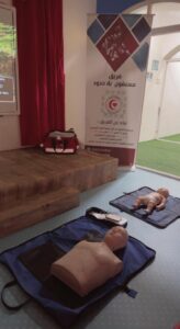 وتضمنت المبادرة بقيادة المدربة عهد السعيد وثرياء البركات تعريف بفريق مسعفون بلا حدود التطوعي وأهدافة ورؤيتة وبعدها ورشة عمل تضمنت مواضيع متنوعة منها تعريف الإسعافات الأولية وتقييم موقع الحدث وسلسلة النجاة واستخدام الحواجز والتعامل مع مهارات النزيف الشديد والأختناق والإنعاش القلبي الرئوي وكذلك الحروق ودرجاتها ووضعية الإفاقة، كذلك تم استعراض حقيبة الإسعافات الأولية المنزلية والتركيز على مدى أهمية تواجدها في كل دور بالمركز أو البيت، وذلك وسط مشاركة المعلمات في التطبيق العملي على الدمى المعروضة في الورشة.