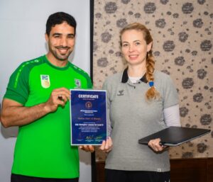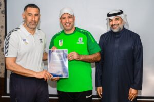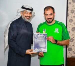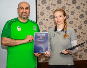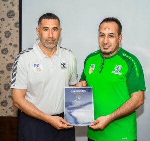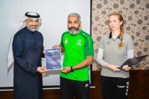 وسلم الأستاذ علي العليوات عضو مجلس إدارة الاتحاد السعودي لكرة اليد في مقر إقامة الدورة في مدينة الخبـر بحضور الدكتورة إيلونا هابكوفا، والدكتور نبيل طه، المحاضرين المعتمدين شهادات التخرج من الدورة وهم: عبدالمنعم آل هلال، هاشم الشرفاء، خالد البريدي، فرج آل إسماعيل، عبدالرسول الجزيري، بشير القريناوي، صلاح العلي.
