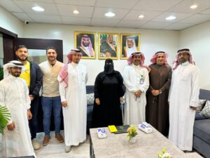 وضم وفد فرسان الرياضة رئيس مجلس الإدارة الأستاذ محمد الشيخ و الأستاذ علي الشيخ و الأستاذ جمال الصالح و الإستاذة عائشة العتيبي.