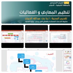 نظم تمكين الضمان الاجتماعي بالمنطقة الشرقية بالدمام مساء يوم الاربعاء الموافق 25 يناير 2023 دورة تدريبية بعنوان “ تنظيم المعارض والفعاليات “ عبر المنصة الافتراضية زووم تقديم مشرفة الخدمات المناسبة بالقطاع غير الربحي في وزارة التجارة أ: رنا بنت عبدالله الدبيان شارك فيها ٣٠ مستفيد من جميع مناطق ومحافظات المملكة وتهدف هذه الدوره الى اثراء مهارات وتعزيز خبرات المستفيدين المقبلين على العمل الحر أو الراغبين في زيادة فرصتهم الوظيفية المناسبة في هذا المجال حيث طرحت الدوره عدد من المفاهيم الاساسية عن انواع المعارض والفعاليات واهميتها واليات بناء الصورة الذهنية مع تحديد حاجة المنظمه لاي مناسبة كما قامت المدربة بعرض احدث الاتجاهات وتطبيقات عملية ابداعية لتنظيم المعارض ونجاحها