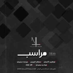 تستضيف جاليري نايلا الأربعاء المقبل الموافق ١ فبراير ٢٠٢٣م المعرض الفني ” مَرَاسِب ” الذي يستمر أربعة أيام، يشارك فيه خمسة من الفنانين هم ” ابراهيم الألمعي، سلطان الجريس، ميساء سليمان، نورة بن سعيدان، هند الأسمري “.