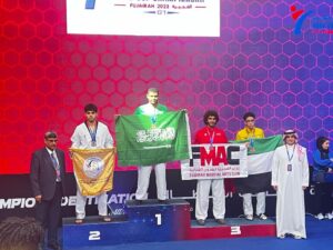 اختتمت أمس الجمعة النسخة الثالثة من البطولة العربية للتايكوندو المصنّفة G1 تحت إشراف الاتحاد الدولي للتايكوندو على مدى يومين، وتوج الأبطال الدكتور أحمد الزيودي رئيس اتحاد الإمارات للتايكوندو بحضور رئيس الاتحاد الدولي للتايكوندو الدكتور تشونج وون شوي ، والسيد ادريس الهلالي رئيس الاتحاد العربي للتايكوندو و العميد شداد العمري النائب الأول للاتحاد العربي للتايكوندو، ورؤساء الاتحادات العربية المشاركة في البطولة التي دارت رحاها بمجمع زايد الرياضي بدولة الإمارات بمشاركة 722 لاعباً ولاعبة يمثلون 20 دولة بالوطن العربي، تأتي في مقدمتها الإمارات التي تشارك بأكثر من 100 لاعب ولاعبة، منهم 33 يمثلون المنتخب الوطني ، وجاءت حصيلة لاعبو ولاعبات المنتخب السعودي بالإضافة للأندية المشاركة 23 ميدالية متنوعة .