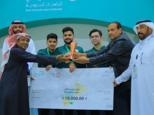 وتوج رئيس الاتحاد الرياضي للجامعات السعودية الأستاذ الدكتور خالد بن صالح المزيني فريق جامعة الإمام عبدالرحمن بن فيصل بكأس البطولة والميداليات الذهبية، فيما جاءت جامعة الملك عبدالعزيز بالمركز الثاني محققةً كأس المركز الثاني والميداليات الفضية، وبالمركز الثالث جامعة الملك فهد للبترول والمعادن ونالت كأس المركز الثالث والميداليات البرونزية، وذلك خلال حفل التتويج الذي أقيم في الصالة الرئيسية بالجامعة وذلك بحضور معالي رئيس جامعة الإمام عبدالرحمن بن فيصل الأستاذ الدكتور عبدالله الربيش، وأمين عام الاتحاد الرياضي الدكتور عبدالإله الصلوي ومدير البطولة الدكتور أحمد السنتلي ورؤساء وفود الجامعات المشاركة.