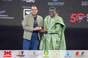وقام بتسليم الميداليات السيد ايدي ايساكا رئيس الاتحاد الإفريقي للتايكوندو، والسيد /إدريس الهلالي رئيس الاتحاد العربي للتايكوندو
