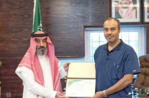 وفي ختام الدورة قدم الأستاذ عمير الزهراني شهادات شكر وتقدير لمقدمي الدورة هاشم السعيدي وتركي آل مبارك .