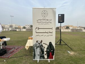 و اشتملت الفعالية التي أقيمت مساء اليوم على العرضة السعودية ، والأغاني الوطنية ، والزي السعودي ، و الماكولات الشعبية ، والألعاب الهوائية، فقرة المسابقات و الجوائز، كما ضمت الفعالية اركان خاصة بالأسر المنتجة، تنوعت بين الماكولات ومشروبات ، اكسسوارات، نقش الحناء، الرسم على الوجوه، الأعمال اليدوية .