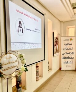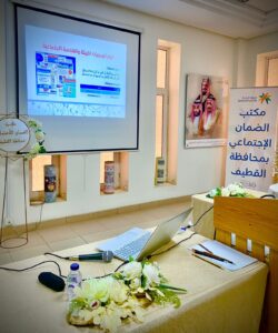 قدمتها المدير المؤسس لشركة المداد لتقنية المعلومات ومركز المداد للتدريب ( عقيلة الشعلة)وبلغ عدد الحضور ( ٣٥ ) موظفة من منسوبات المكتب والجمعيات الخيرية ومستفيدات الضمان.