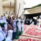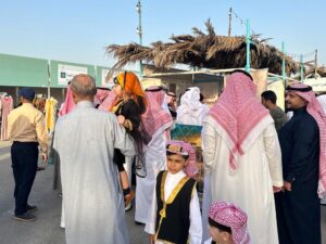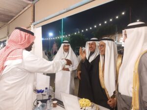 و توجه الشيخ النمر و أعضاء الوفد (السيد جمعه طاهر الاربش والسيد ناصر الناصر و السيد عقيل الحاجي و السيد موسى الامير) ، الى المسرح حيث قدمت عدة فعاليات بهذه المناسبة .