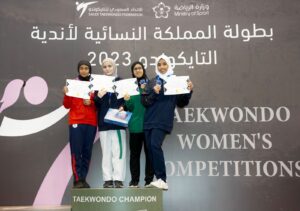 اختتمت أمس منافسات بطولة المملكة النسائية لأندية التايكوندو ضمن جولة يوم العلم بمشاركة (286) لاعبة يمثلون (15) نادياً على صالة نادي النهضة بالدمام .