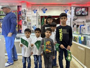في يوم العلم، الكل يحتفل على طريقته لكن الجميع يتشارك الفرحة مع الأخرين ، فمن تاروت الجميلة احتفل محمد شطي ( أبو إبراهيم) بيوم العلم شارك الأطفال والأهالي فرحتهم بهذه المناسبة ، فقد توافد الإطفال وهم يحملون الأعلام و يرددون النشيد الوطني والأغاني الوطنية ، في منظر غاية في الجمال والروعة .