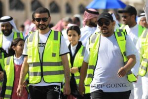 ولما لهذه المبادرة من أهمية في تحقيق أحد مستهدفات رؤية المملكة (۲۰۳۰) المتعلقة بزيادة عدد الممارسين الرياضيين وبناء مجتمع ينعم أفراده بنمط حياة صحية ولما تحققه من مردودات إيجابية في تعزيز الصحة العامة ونشر ثقافة المشي وتحفيز كافة فئات المجتمع على ممارسته.