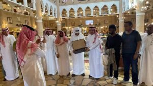 رئيس جمعية اللاعبين القدامى بالمنطقة الشرقية الاستاذ احمد النباط بتكريم الاستاذ جاسم العثمان بحضور الجميع وقبل المغادرة قام الجميع باحتساء شرب الشاي المخدر في المجلس العسيري.