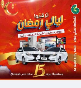 تنطلق فعاليات الإحتفال بمناسبة مرور ١٥ عام على افتتاح مجمع القطيف سيتي مول بفعاليات ( ليالي رمضان ) يتخللها سحب على سيارتين موديل ٢٣ وهدايا قيمة منوعة لعموم المتسوقين وهناك مسابقات وجوائز يومية وجولة المسحر وشخصية ام عليوي واوبريتات شعبية وفقرة القرقيعان وفقرات كوميدية بأشراف المخرج محسن الحمادي في مجمع القطيف ستي مول بادر بالتسوق والترفيه لتحظى بالفوز بإحدى الجوائز والكوبونات القيمة .. تبدأ الغعاليات يوم الأربعاء ٢٩ / ٣ وحتى ٤ مايو ٢٠٢٣.