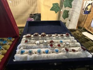 و من خلال فعالية “حرفيون 2″التقينا(بأم محمد ) زكية السيهاتي التي تمارس مهنة بيع الأحجار الكريمة من 37 سنة وقد ورثت هذه المهنة عن والدها ، وبدأت بها وهي في عمر 22 .