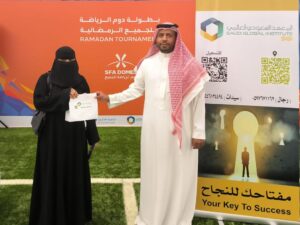 اكد مدير المعهد السعودي العالمي حمد بالحارث الذي تواجد ضمن فعاليات البطولة سعادته بما شاهده من روعة في التنظيم والحضور الجماهيري الكبير والتنافس المحموم بين الفرق المشاركة في فعاليات البطولة مبديا سعادتهم بالشراكة مع الاتحاد السعودي للرياضة للجميع في هذه البطولة لخدمة المحتمع وكافة الرياضيين لشغل اوقات فراغهم بما يعود عليهم بالنفع والفائدة علي الجميع ، مثمنا الجهود المبذولة ومبديا ارتياحهم للشراكة في هذه البطولة مساهمة في انجاحها وهي تقام في ليالي هذا الشهر المبارك متمنيا للفرق المشاركة التوفيق في الوصول للادوار النهائية ومن ثم الظفر بكأس البطولة الغالية التي تعتبر قلادة شرف للفريق الفائز بها يذكر ان المعهد يقدم العديد من الجوائز علي هامش البطولة،.