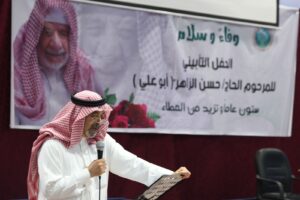 كما تحدث السيد علوي مكي مدير مكتب الرئاسة العامة لرعاية الشباب، عن أبرز المواقف التي يتذكرها مع الفقيد أثناء فترة عمله في مكتب الوزارة وعلاقته مع باقي الموظفين، عقب ذلك ألقى الشاعر الأستاذ فريد النمر قصيدة رثاء في حب الراحل الحاج حسن الزاهر؛ عبرت عن مشاعر الحاضرين.