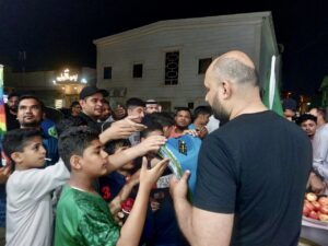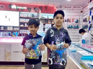 وزع “شطي” الكثير من الهدايا المتنوعة من العاب ، و بالونات و أعلام واكسسوارات و ملابس ، بالإضافة للحلوى والفواكة، لإدخال الفرحة والبهجة على الأطفال والكبار من أهالي تاروت والمقيمين فيها .