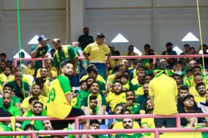 هذا الجمهور العاشق لكيانه لازم الفريق مشجعا ومساندا في مباراته أمام شقيقه نادي مضر على صالة الأمير نايف بالقطيف ومن ثم شاركه الفرح بالتتويج في مقر النادي لتستمر الأفراح ويدخل خزينة النادي انجاز جديد يضاف إلى انجازات الخليج .