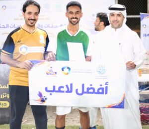 وحصل اللاعب فيصل التميمي من حرس الحدود على جائزة أفضل لاعب في المباراة .