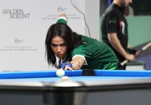وفي منافسات السيدات بلياردو تاهل اربع لاعبات الى نصف نهائي 9 كرات سيدات هنا :