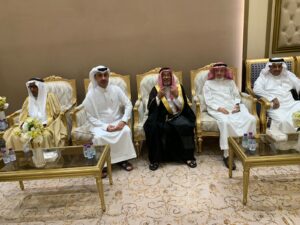 في ليلة شرقاوية من ليالي الفرح والسرور احتفل الاستاذ حامد الغامدي بزفاف ابنه ” محمد ” على كريمة الاستاذ خلوفة بن عبدالله الغامدي بحضور عدد من الشخصيات الاجتماعية والقيادية ورجال المال والاعمال تقدمهم سعادة محافظ محافظة الليث الأستاذ عمران بن حسن الزهراني والعميد علي بن حسن الزهراني وبحضور لفيف من الاهل والاقارب والاصدقاء والزملاء وابناء القبيلة وذلك يوم الجمعة الماضي في قاعة بن سلطان في حي الفيصلية بالدمام في ليلة كانت مميزه في جميع فصولها بدأت بأستقبال الضيوف ثم تناول الجميع وجبة ” الّلطف ” وهي عبارة عن اكلات شعبيه تُقدم في مناسبات الزواج والاحتفالات في المنطقة الجنوبية والتي تسبق وجبة العشاء والتي قُدم فيها الخبزة والقرصان والسمن والعسل والعريكة والعصيدة والمراصيع والتمر وقرصان العسل وكل مالذ وطاب .